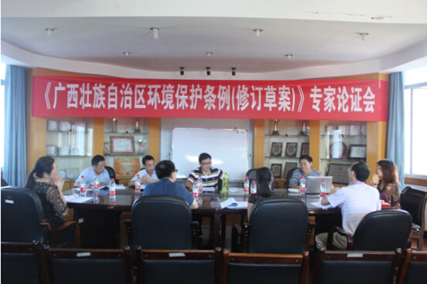 论证会由杨建生教授主持,分三个阶段进行。第一阶段由费军组长从环保执法、环保法适用时效的角度做了七个方面的开场论证。第二阶段由薛跃规教授以生物科学研究,物种保护、低碳耗能的视维提出论证修改意见。第三阶段由参加会议的教授、博士从环保法律制度理论入手,对比域外发达国家,域内发达地区,先进的立法经验,结合广西区域环境特色阐述论证。