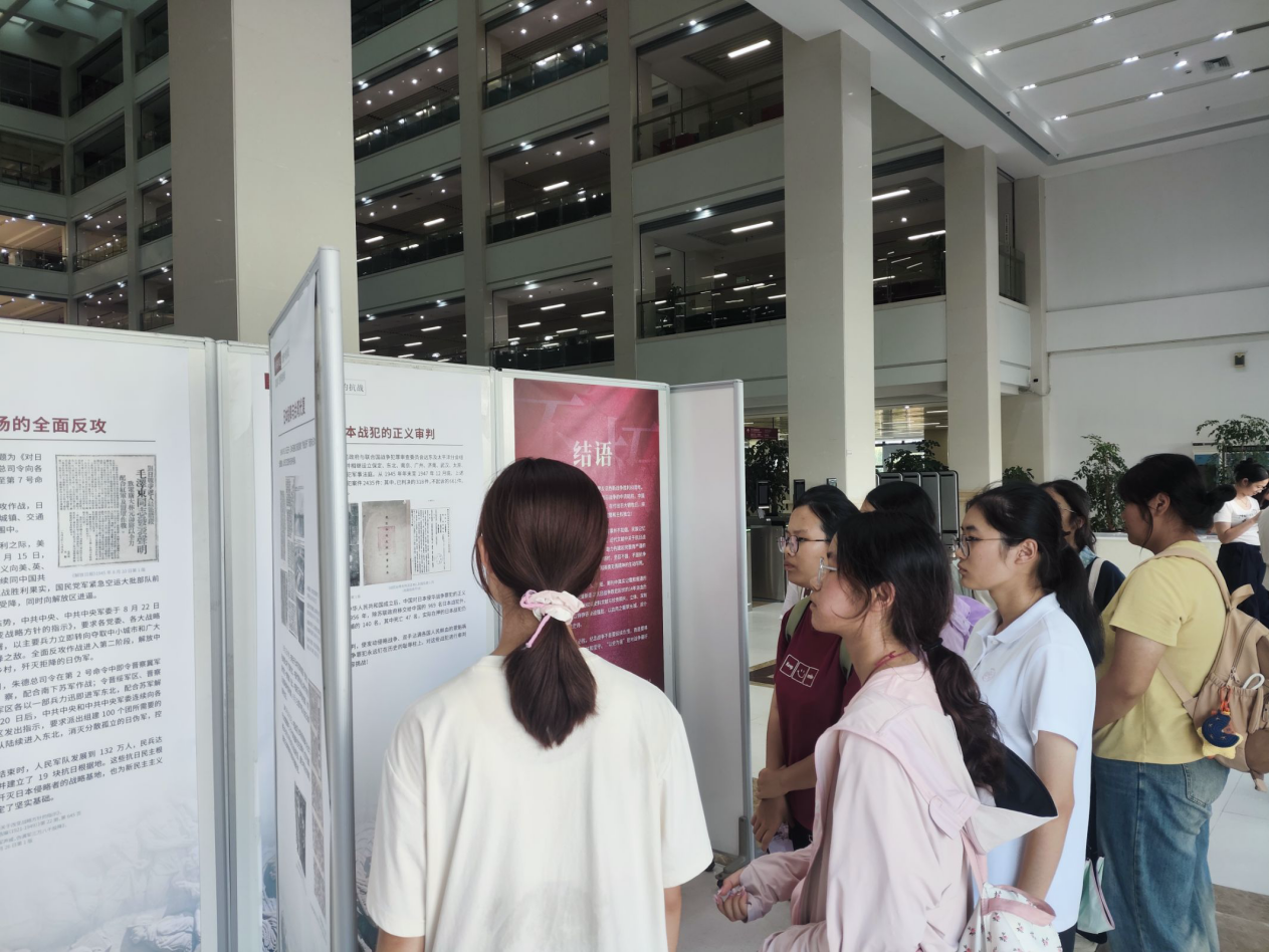 为纪念中国人民抗日战争暨世界反法西斯战争胜利80周年,深刻感悟革命先辈的爱国精神与奉献精神,进一步加强党员理想信念教育,提升支部凝聚力与战斗力,9月17日,法学院本科生第二党支部在雁山校区图书馆开展“铭记抗战历史 传承红色基因”主题党日活动,组织支部全体党员和已递交入党申请书的青年团员代表共同参观“不朽的印记——文献中的抗战”和“众心向党 自立自强——中国科学家入党志愿书”主题展览。活动由支部书记钟婉莹主持。