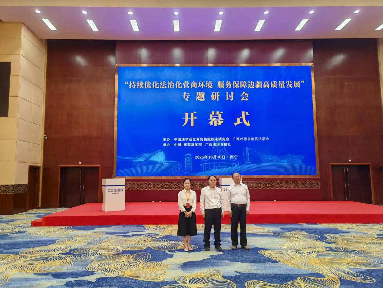 专题研讨会邀请区内外及越南知名法学专家学者围绕“人工智能赋能法治建设与人工智能治理法治化”“深入贯彻《中华人民共和国民营经济促进法》 促进经济持续健康高质量发展”“中国—东盟商贸合作及法治保障”“涉外法治人才培养工作思路及路径”四个专题进行深入研讨。区直有关单位负责同志,设区市政法单位主要负责同志,国企、民企企业家或法务代表等约120人参加会议。我院陶斌智副院长、李德进副院长、马建兵教授、莫琳博士受邀参加本次专题研讨会。