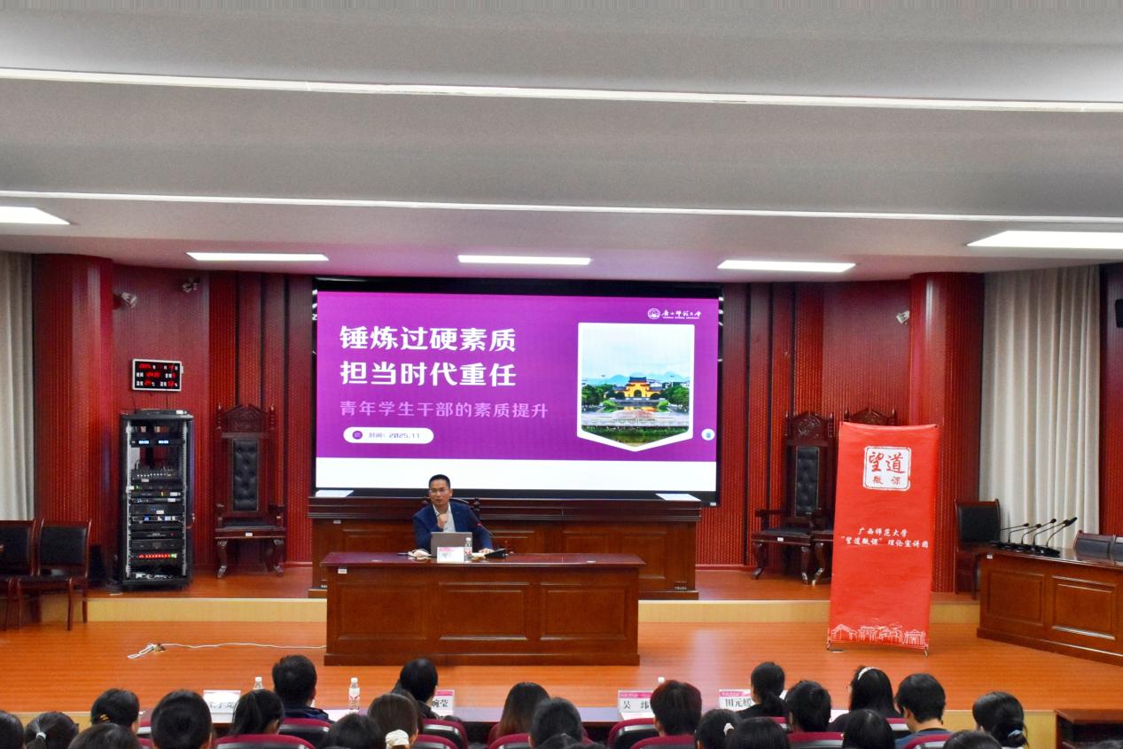 窦武以“锤炼过硬素质担当时代重任”为题授课,围绕青年学生干部应具备的核心素质与提升路径展开讲解。他强调,新时代学生干部应具备政治、能力、心理、道德与作风五种素质,不断在理论武装中筑牢政治根基,在服务实践中锤炼能力本领,在反思总结中实现自我净化,在统筹协调中提升工作效能,努力成长为有理想、敢担当、能吃苦、肯奋斗的新时代青年。