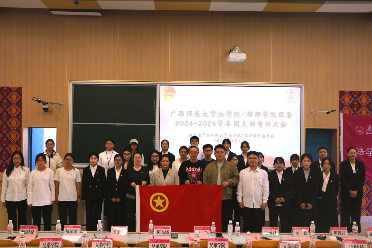 为深入贯彻落实习近平总书记关于青年工作的重要思想,推进团支部规范化、标准化建设,11月15日,法学院在雁山校区文一区108教室举行2024-2025学年团支部考评大会。学院团委书记吴纬、团委副书记、各年级辅导员、校团委代表以及兄弟学院代表出席大会,学院各团支部代表参加考评会。