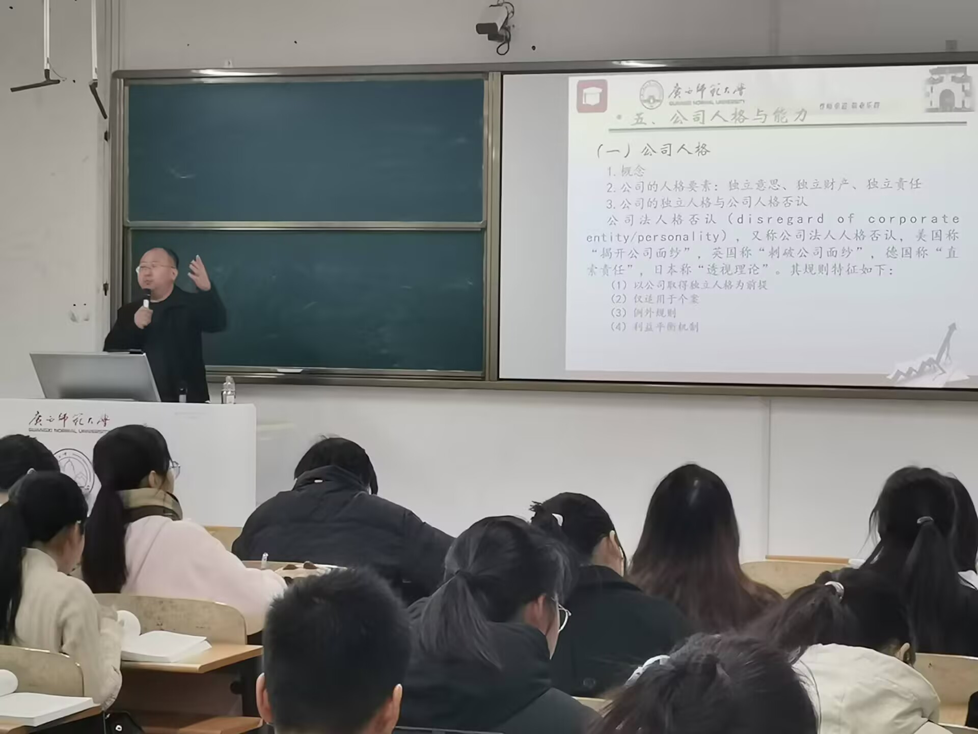 马建兵教授主讲《商法学》课程公开课,围绕“公司人格否认制度”等知识点,结合典型司法案例,深入挖掘知识背后的原理。课堂氛围生动且富有深度,展现了扎实的教学功底与丰富的实践经验。