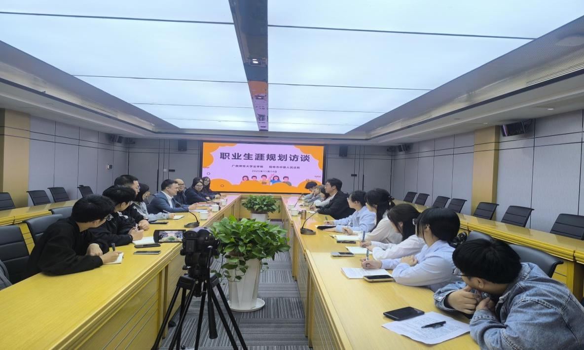 为助力研究生精准锚定职业方向,有效破解学业与就业衔接难题,11月14日下午,学院教师何兴和带领2025级硕士研究生代表,先后前往广西桂山律师事务所、桂林市中级人民法院开展职业生涯规划访谈活动。