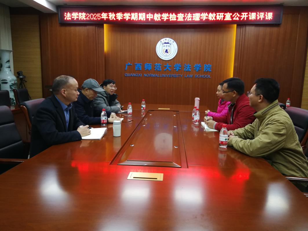 为持续深化教学改革,全面提升课堂教学质量,11月21日,法学院法理学教研室组织开展公开课展示、集体评课与教学研讨于一体的系列教研活动。本次活动周世中教授、郭剑平教授、学校教学督导钟铭佑教授,以及教研室梁国江老师、刘琳老师、石晋之老师等全程参与。