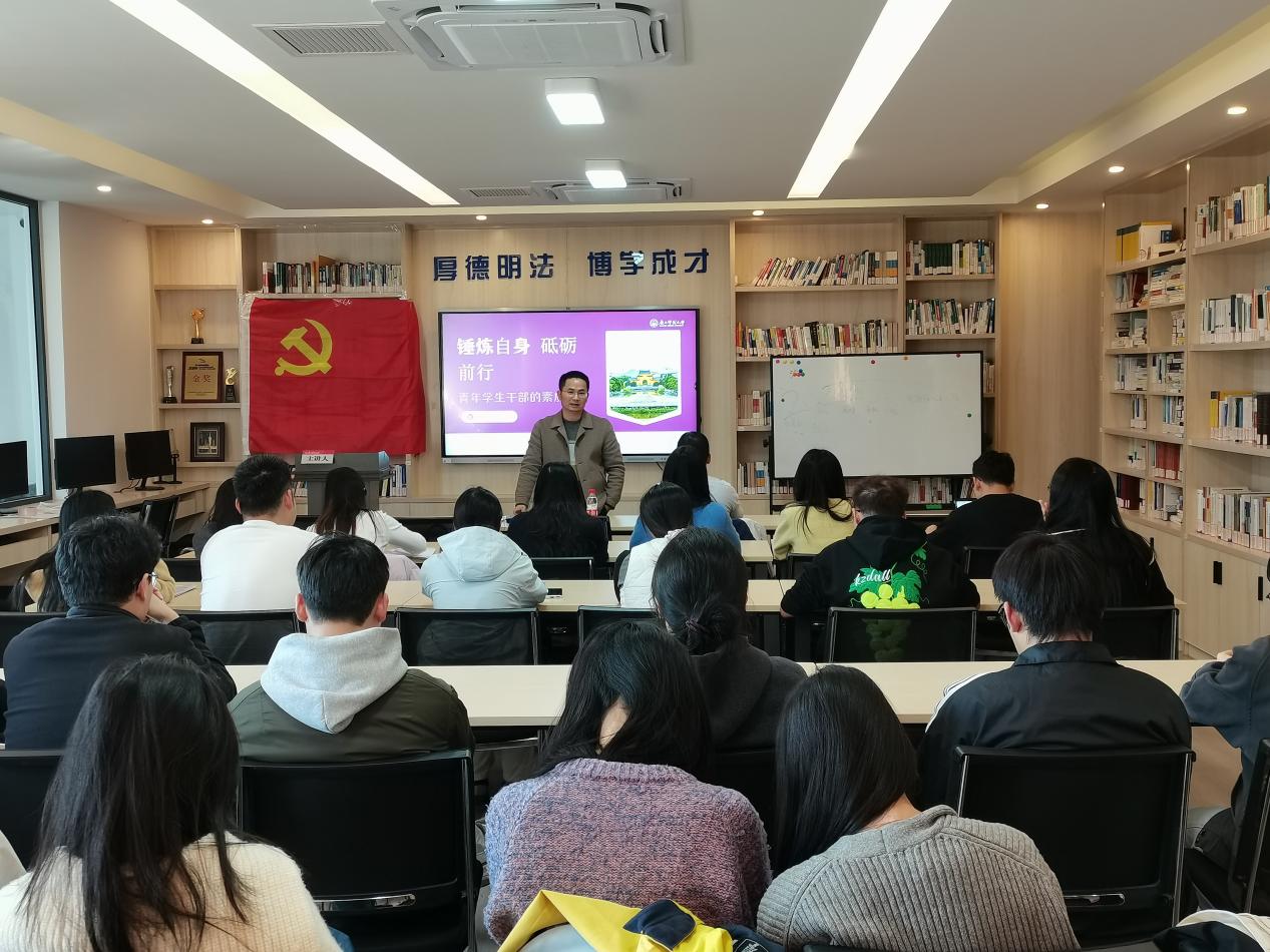 窦武以“锤炼自身,砥砺前行——青年学生干部的素质提升”为主题,结合个人经历与工作实际,围绕学生干部的自我定位、核心素质与能力提升路径展开系统讲授。他强调,学生干部的本质是服务者,必须牢固树立“从同学中来,到同学中去”的理念,真诚服务同学,积极协助老师,在奉献中实现价值。窦武书记指出,一名优秀的学生干部应具备五项核心素质:政治素质是根本,能力素质是基础,心理素质是支撑,道德素质是底色,作风素质是保障。在夯实素质基础的同时,他还鼓励大家通过“勤于学习、勇于实干、善于反思、懂得平衡”四种途径,实现能力的持续提升。最后,窦武书记勉励全体党员在学生工作中锻炼成长,在服务奉献中发光发热,努力成为有理想、敢担当、能吃苦、肯奋斗的新时代青年,为未来投身法治中国建设积蓄力量。