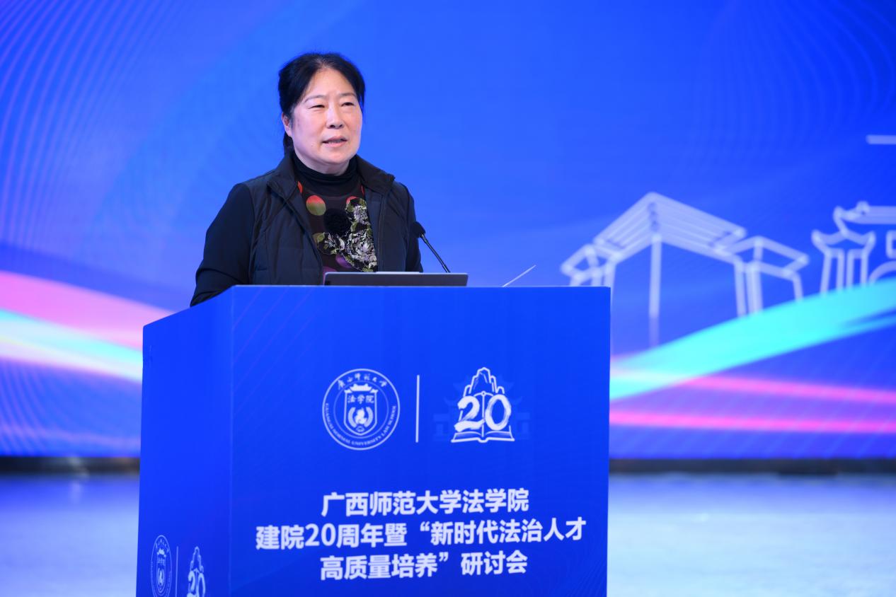 12月8日,由广西师范大学法学院主办的“新时代法治人才高质量培养”研讨会在桂林举行。本次会议围绕新时代法治人才高质量培养展开深入探讨,来自华东政法大学、中南财经政法大学、广西警察学院等政法院校领导,北京师范大学、西南政法大学、同济大学、广西大学等法学院,以及自治区人大监察和司法委员会、自治区人大常委会法工委、自治区民宗委、自治区人民检察院、自治区高级人民法院、自治区司法厅、自治区律师协会等相关实务部门专家学者,法学院师生代表齐聚一堂。会议由中南财经政法大学原副校长姚莉教授主持。