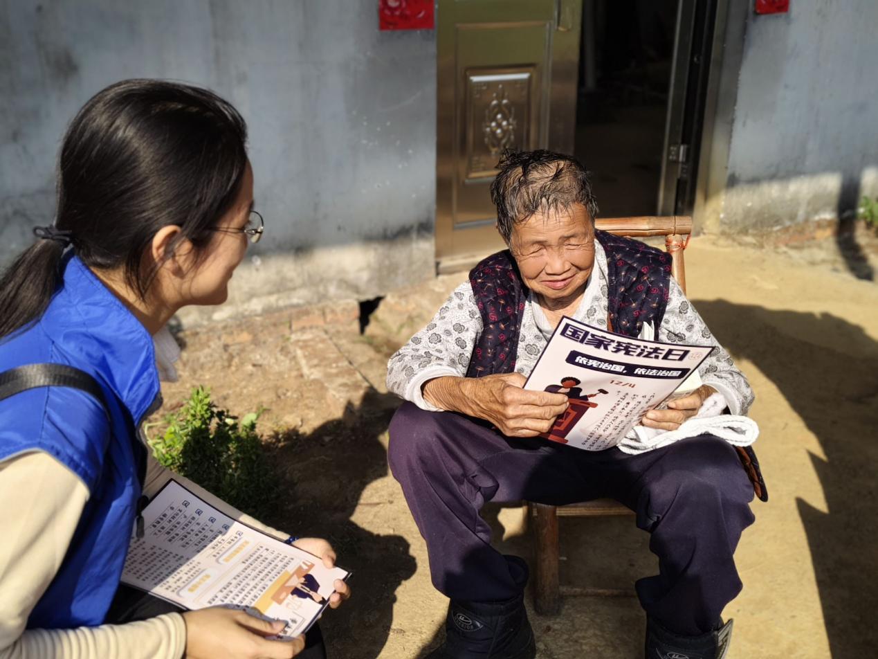 活动当天,志愿者分组走进文家村家家户户,以宪法为核心,结合村民日常高频法律需求,围绕公民基本权利义务、土地承包权益、婚姻家庭纠纷、劳动报酬保障等重点内容讲解。还聚焦农村常见诈骗场景,用“健康讲座卖神药”“冒充干部发补贴”等真实案例,拆解骗术,传授“五不一打”防骗技巧,让法律条文鲜活易懂。村民们认真倾听、积极互动,现场氛围轻松融洽。志愿者用通俗话语回应疑问,解答土地使用、权益维护等困惑,增强村民法治认知与风险防范意识,拉近法律与生活的距离。