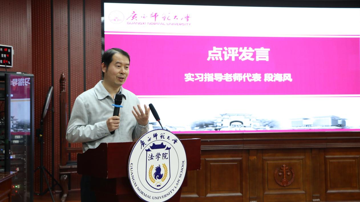 实训指导老师段海风对各小组汇报依次进行点评。他强调,14个小组的汇报总体内容详实、重点突出,充分展现了法科学子扎实的专业基础、积极的实训态度以及较强的适应能力与问题解决能力。
