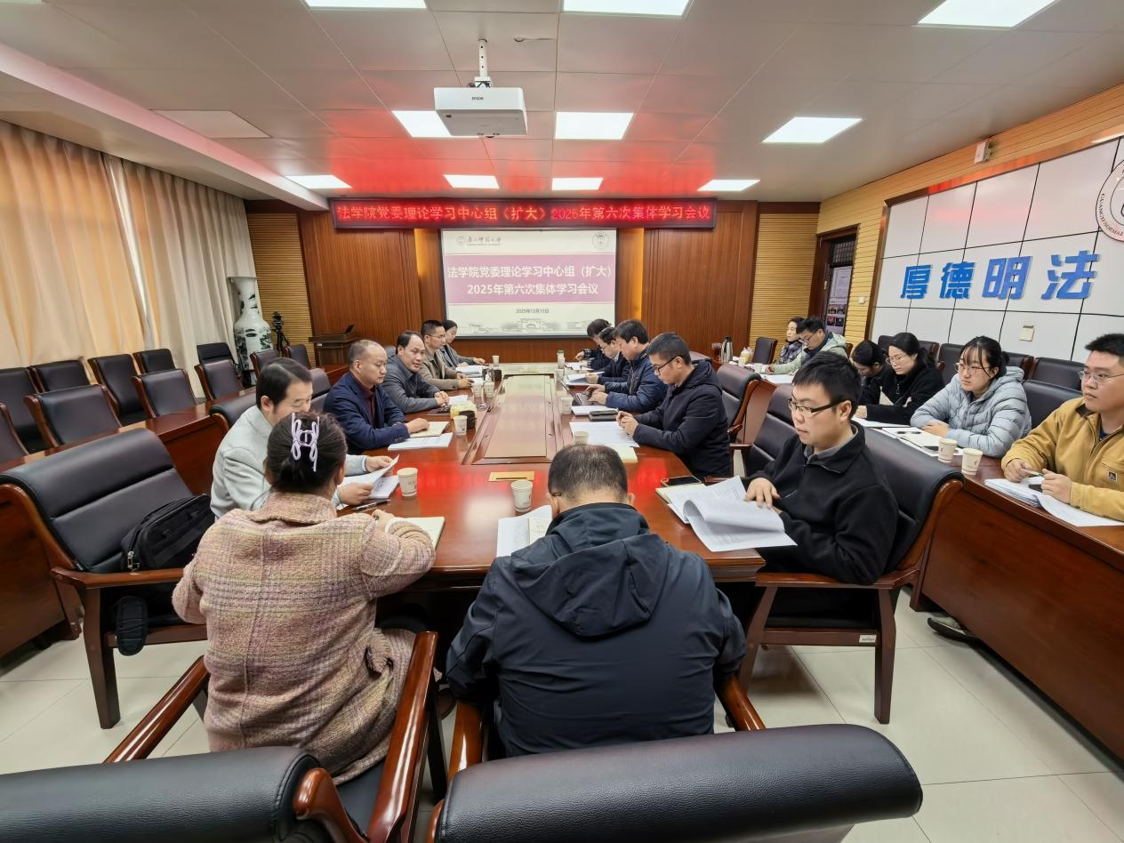 12月15日,法学院党委召开理论学习中心组(扩大)2025年第六次集体学习会议。会议由学院党委主要负责人主持,全体领导班子、党支部书记参会。校党委常委、组织部部长谭智雄到会指导。