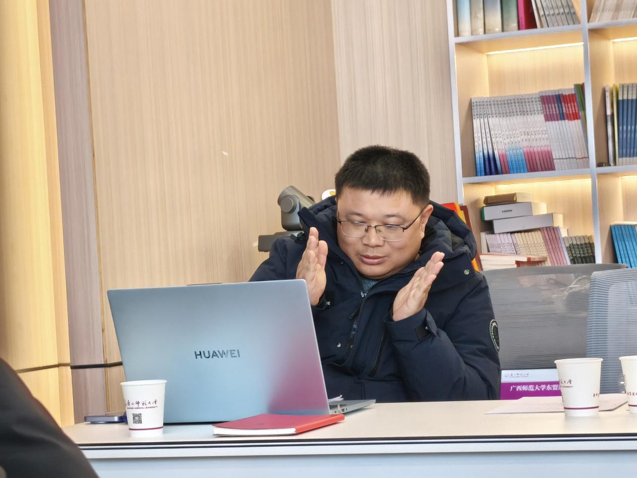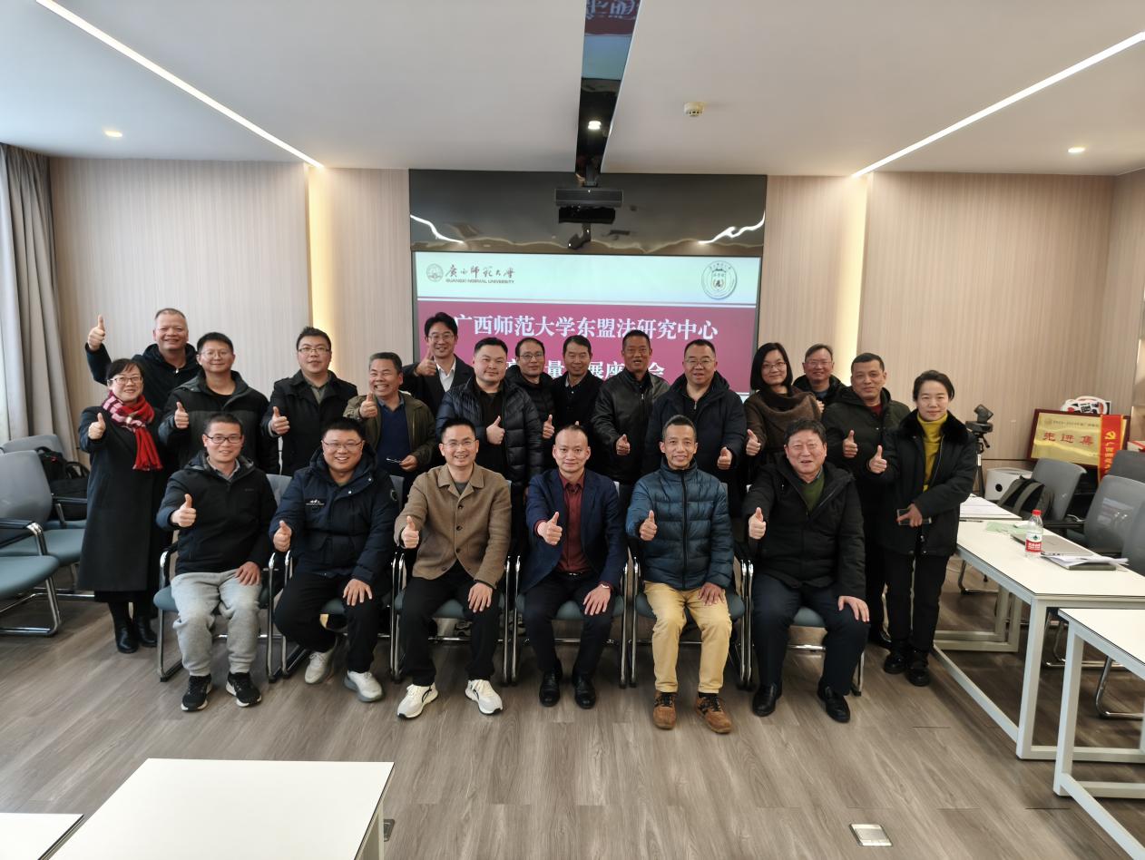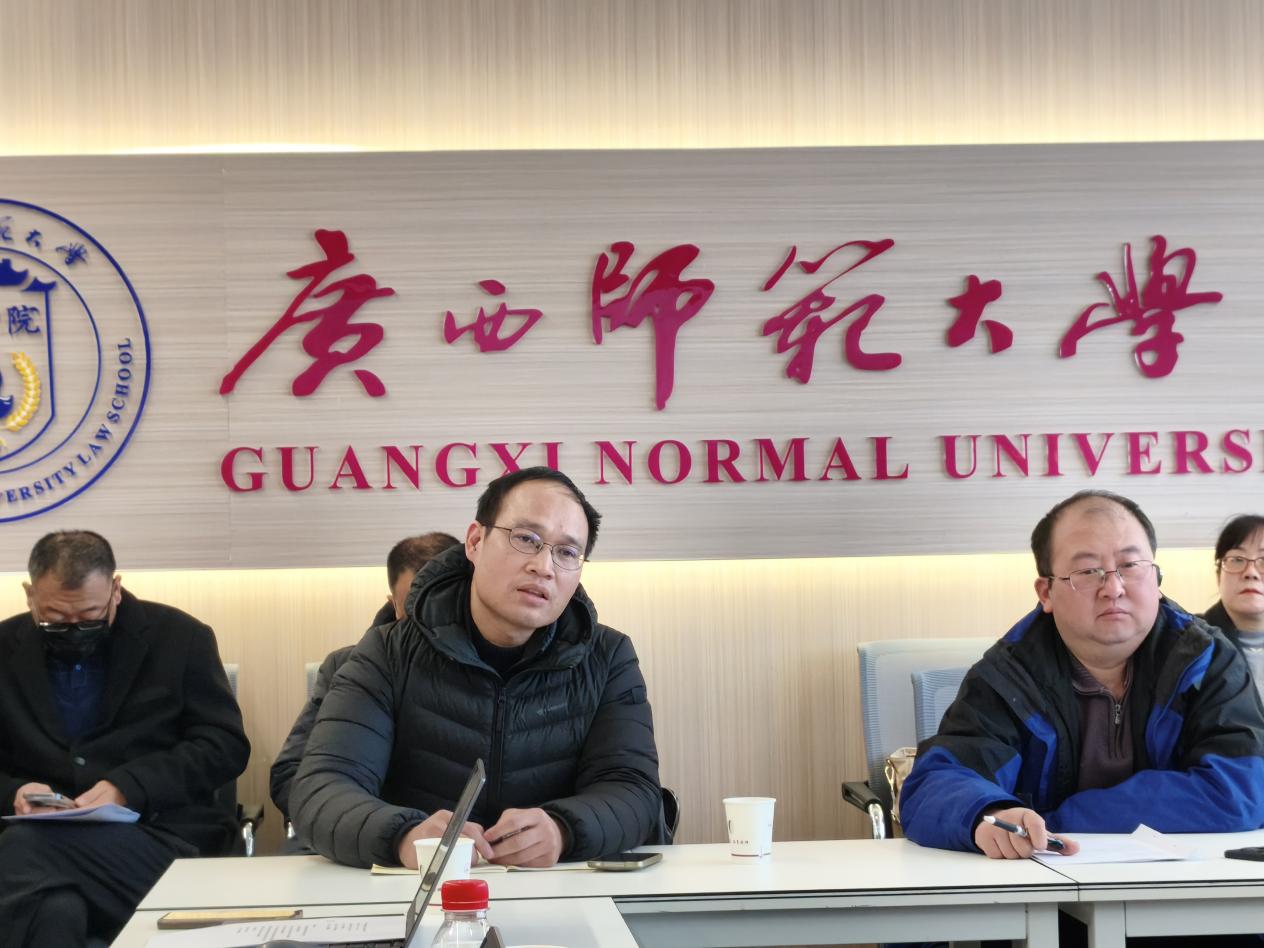 1月7日下午,广西师范大学东盟法研究中心高质量发展座谈会在育才校区第二文科综合楼1006召开。法学院党委书记窦武、院长郭剑平、东盟法研究中心主任李伯军教授及中心成员参加此次座谈会。会议由法学院副院长杨祝顺主持。