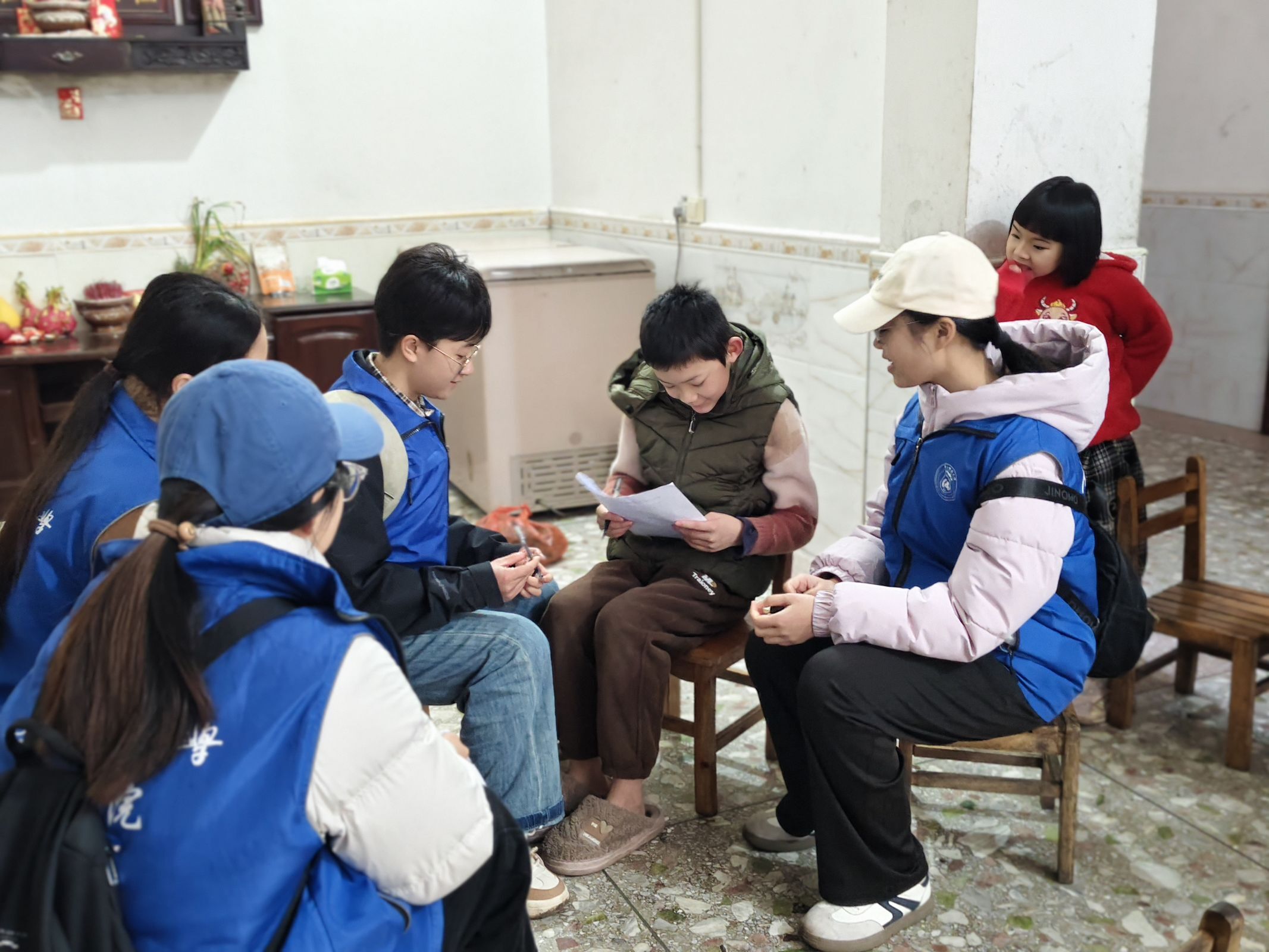 团队成员向乡村未成年人发放调查问卷