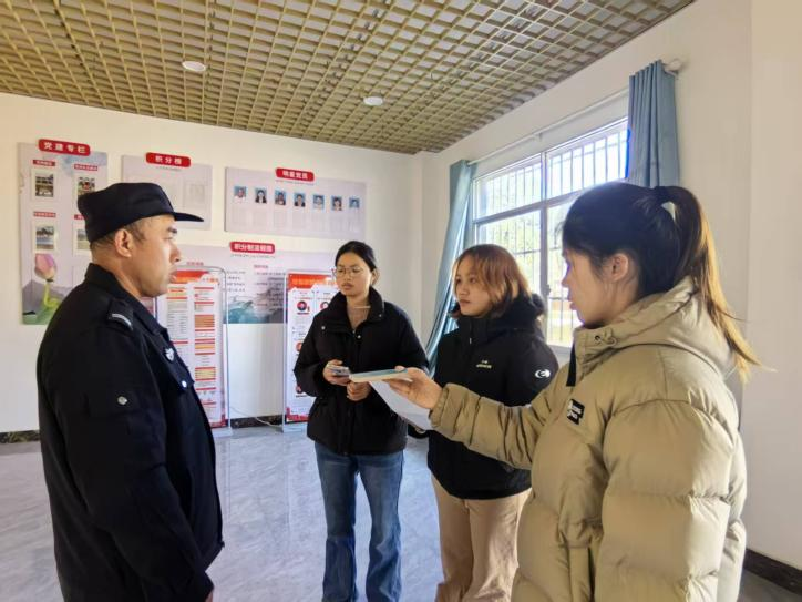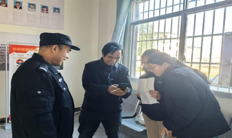 在枫林村党群服务中心,实践团队与社区民警展开深入交流。民警介绍,当前农村老年人仍是电信网络诈骗的高危受害群体,“保健品推销”“养老投资” 等诈骗手段花样翻新、层出不穷。目前,社区已通过宣传栏更新、入户宣讲等方式普及反诈知识,并建立“重点老人台账”,针对独居、高龄等特殊老年群体开展常态化走访,及时劝阻可疑转账交易。下一步,社区将进一步强化警社联动,积极运用方言播报、典型案例教学等适老化方式,切实提升反诈宣传的针对性与实效性。调研过程中,团队偶遇一位曾险些遭遇“帮忙转账”类诈骗的老人,所幸被入户走访的民警及时劝阻。这一真实案例,让团队成员直观感受到基层反诈工作的紧迫性与重要性。