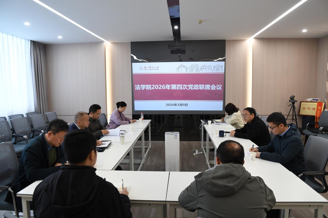 3月9日,法学院召开党政联席会议,认真学习贯彻习近平总书记关于树立和践行正确政绩观学习教育的重要讲话和重要指示精神,传达学习学校党委常委会暨学校党委党的建设工作领导小组(扩大)会议精神,部署法学院学习教育工作。学院党委主要负责人主持会议,学院党委委员及党政领导班子成员参加会议。