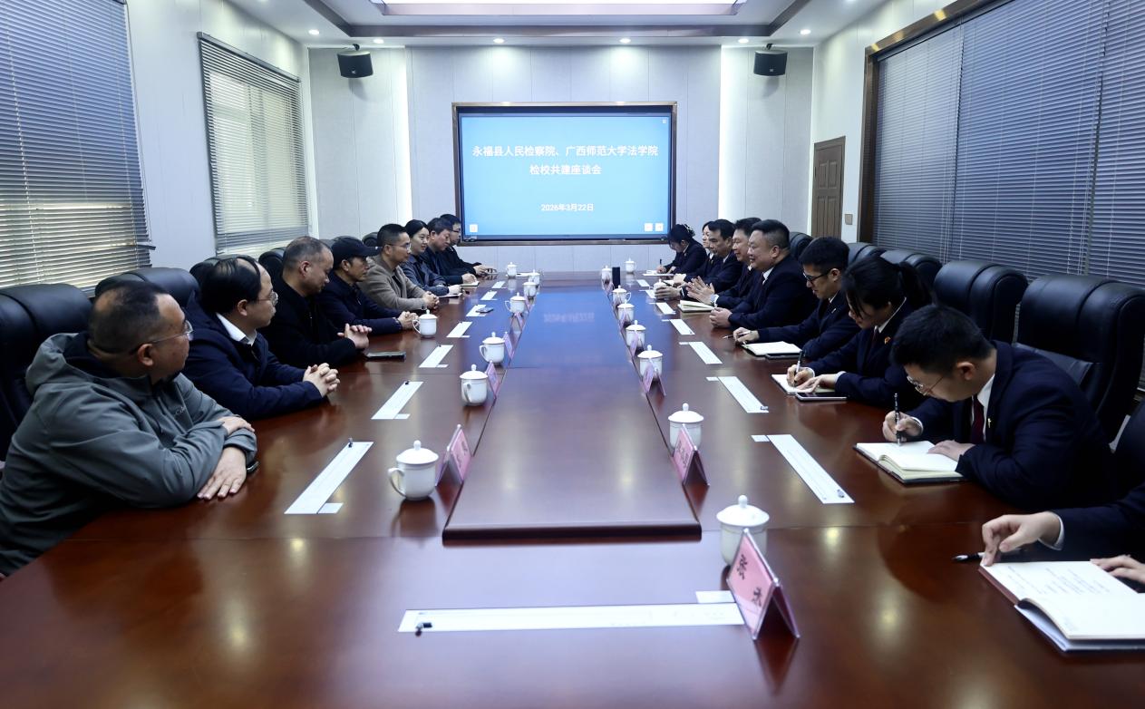 为探索以高质量党建引领法学教育与司法实践深度融合,3月22日,广西师范大学法学院与永福县人民检察院开展党建联建暨工会活动。永福县检察院领导班子、法学院领导班子、双方单位代表参加活动。