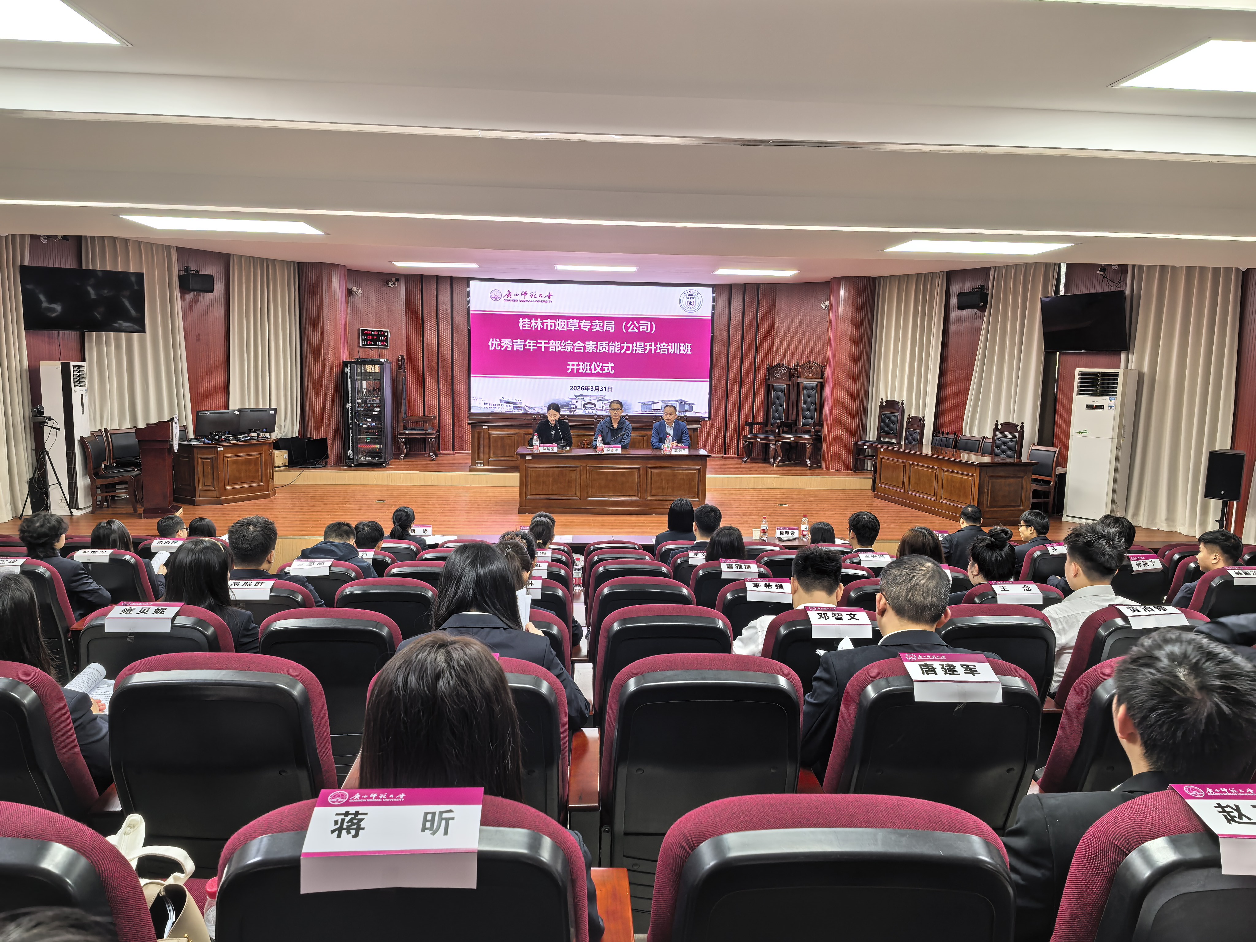 3月31日上午,桂林市烟草专卖局(公司)优秀青年干部综合素质能力提升培训班开班仪式在广西师范大学雁山校区荟文楼210报告厅举行。桂林市烟草专卖局(公司)人力资源管理科科长李吉洋,广西师范大学法学院院长郭剑平、党委副书记钟婉莹出席开班仪式,全体参训青年干部参加本次活动。开班仪式由钟婉莹主持。