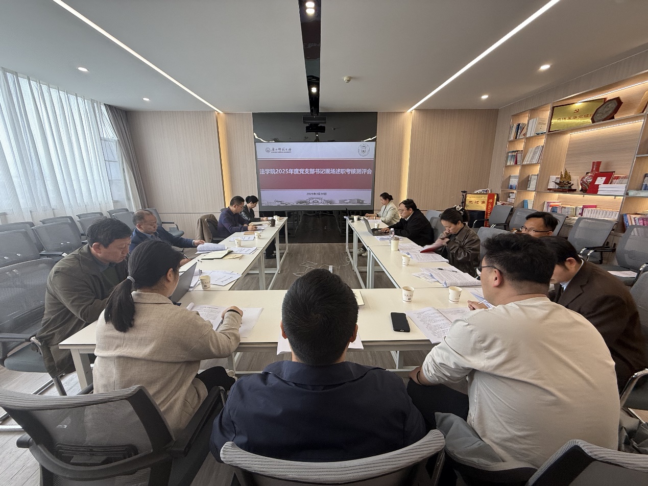 3月30日,法学院2025年度党支部书记现场述职考核测评会在育才校区第二文科楼1006会议室举行。学院党委委员、各党支部书记及专职组织员参会。