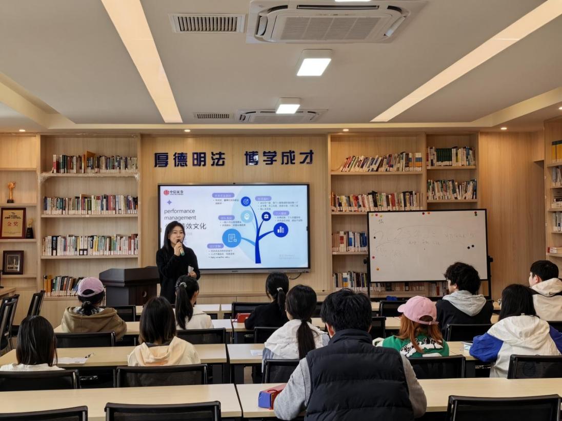 宣讲环节,中信证券华南桂林营业部工作人员向在场毕业生详细介绍企业发展概况、本次招聘岗位需求、职业发展体系及薪资福利政策,重点讲解法学专业与金融岗位的适配性,让同学们全面了解招聘要求与行业发展前景。互动答疑环节,中信证券华南桂林营业部副总经理甘娜针对毕业生提出的行业趋势、职场成长、专业适配等问题逐一细致解答,现场交流氛围热烈。