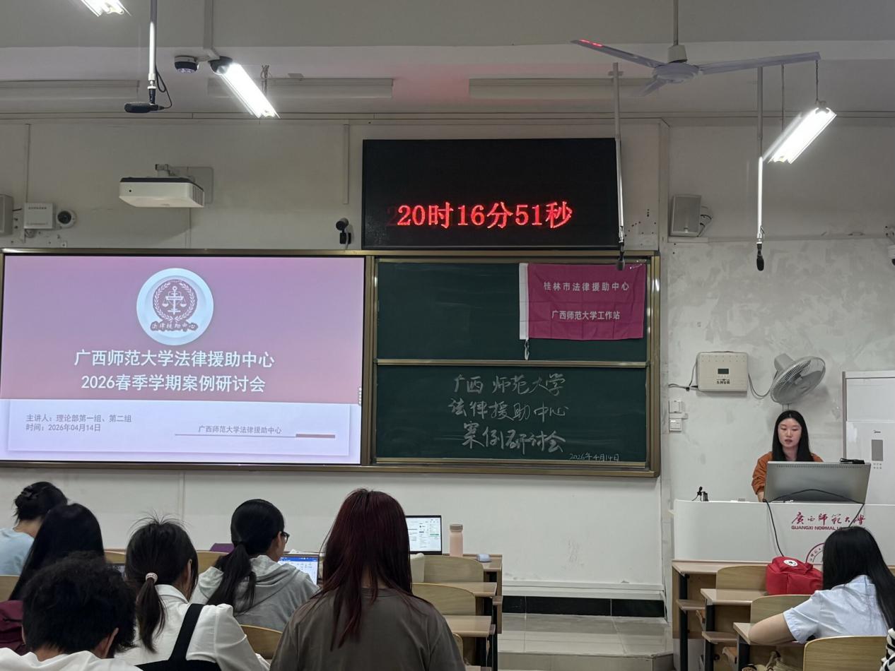 为进一步提升专业实务能力,夯实业务基础,切实增强服务群众、化解纠纷的专业素养,4月14日晚,广西师范大学法律援助中心在雁山校区理科楼2-208教室举行专题案例研讨会。中心理论部、业务部全体成员共同参与研讨,聚焦当前法律实践中的典型疑难案例与热点争议问题开展深入交流。